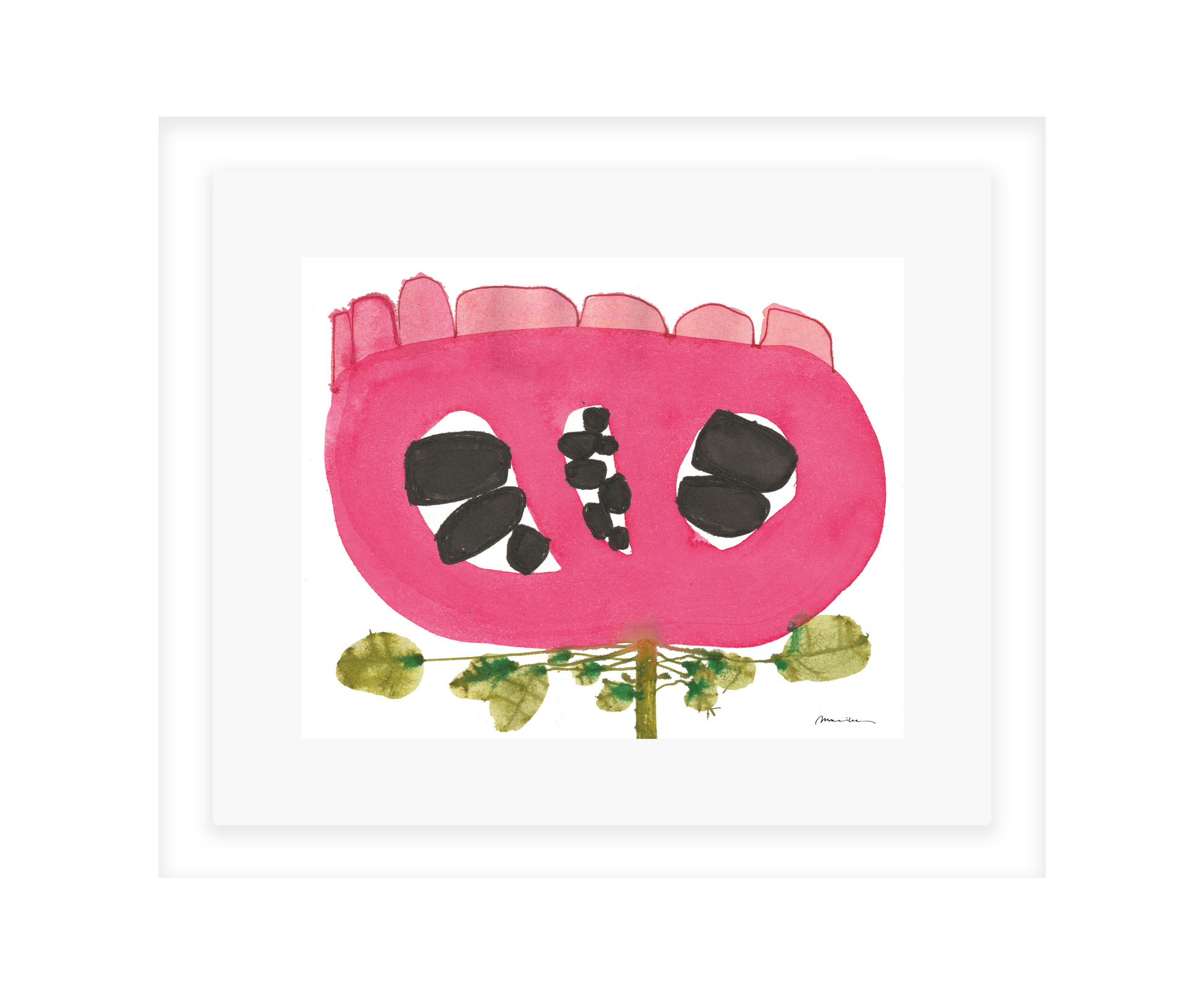 Mariken van Heugten’s work traces the delicate boundary between the organic and the abstract. Working primarily with ink, she begins with simple forms—shapes found in nature, fleeting impressions, or marks of daily life—from which emerge compositions that feel fluid and whimsical. Her prints carry a quiet rhythm: soft washes of tone layered with bold, gestural lines, creating a visual language that feels timeless, tactile, and profoundly playful.