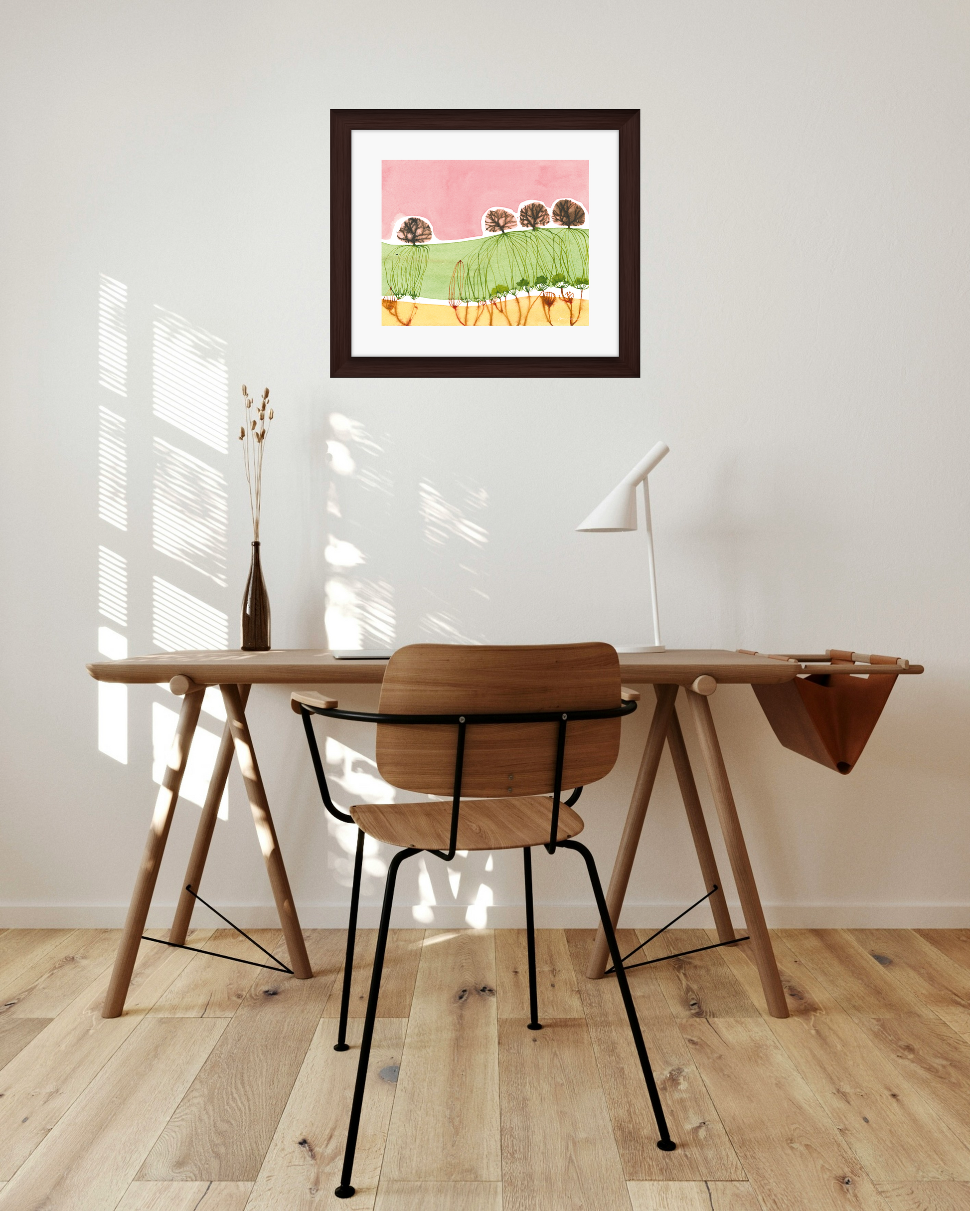 All framed prints come with hanging wire installed and accompanying nails.