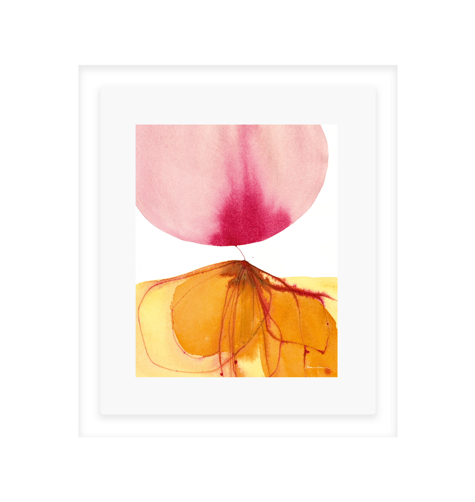 Mariken van Heugten’s work traces the delicate boundary between the organic and the abstract. Working primarily with ink, she begins with simple forms—shapes found in nature, fleeting impressions, or marks of daily life—from which emerge compositions that feel fluid and whimsical. Her prints carry a quiet rhythm: soft washes of tone layered with bold, gestural lines, creating a visual language that feels timeless, tactile, and profoundly playful.